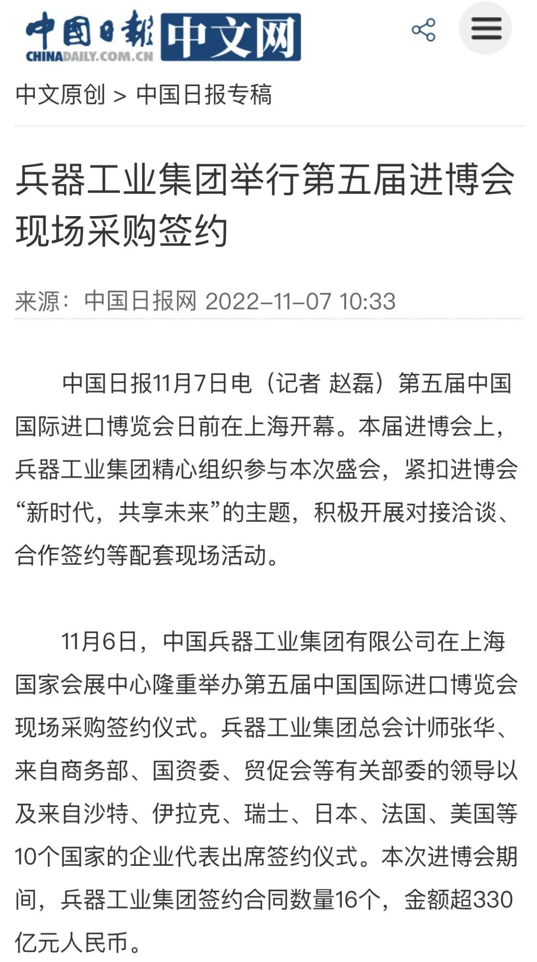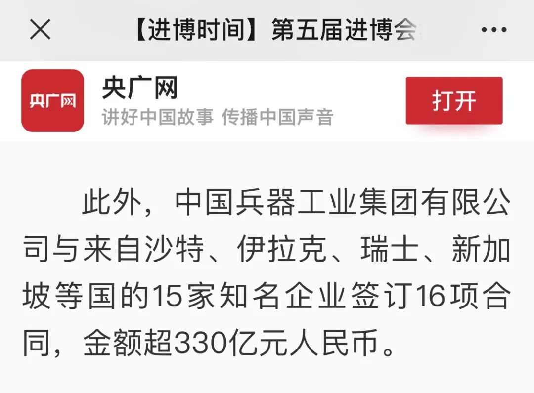 兵器工業(yè)集團第五屆進博會成果受到廣泛關(guān)注 |
