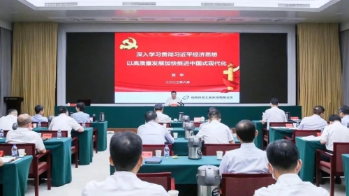 為深入學(xué)習(xí)貫徹習(xí)近平新時(shí)代中國特色社會(huì)主義思想,全面貫徹落實(shí)黨的二十大精神,推動(dòng)全集團(tuán)主題教育走深走實(shí),根據(jù)中國兵器工業(yè)集團(tuán)有限公司黨組主題教育專題黨課總體安排,6月21日,集團(tuán)公司黨組副書記、董事周艦,黨組成員、總會(huì)計(jì)師張華分別以《學(xué)思想強(qiáng)黨性重實(shí)踐建新功,深入貫徹落實(shí)新時(shí)代黨的組織路線,為建設(shè)具有全球競爭力的世界一流集團(tuán)公司提供堅(jiān)強(qiáng)組織保障》和《深入學(xué)習(xí)貫徹習(xí)近平經(jīng)濟(jì)思想,以高質(zhì)量發(fā)展加快推進(jìn)中國式現(xiàn)代化》為題,向全系統(tǒng)講授主題教育專題黨課。中央第四十三指導(dǎo)組成員李軍波到會(huì)指導(dǎo)。